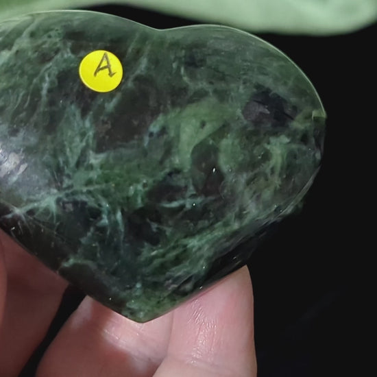 These amazing Serpentine hearts have a rare pattern of dark green, yellow-green, and black swirls. They even have some Pyrite inclusions! These hard to find stones won't last long so be sure to get yours while they last.