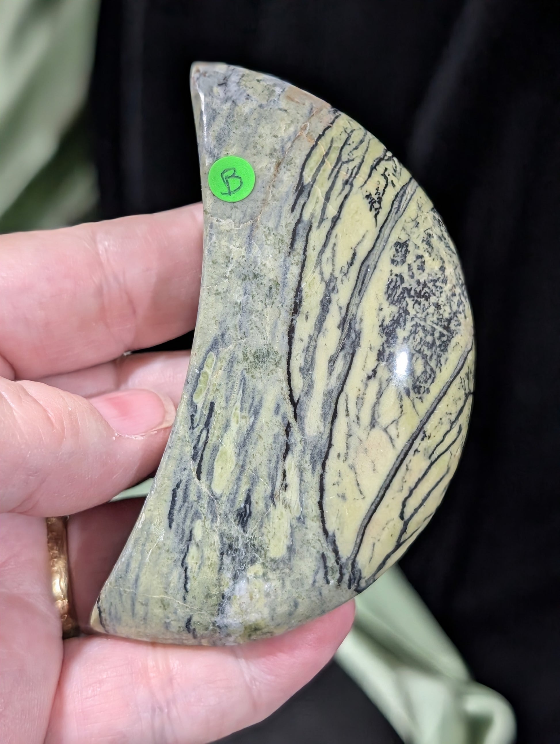 These hand carved Serpentine moon figurines are gorgeous and have such amazing dendritic patterns - this species of Serpentine is very unique! These crystal moons would make an amazing addition to your collection.