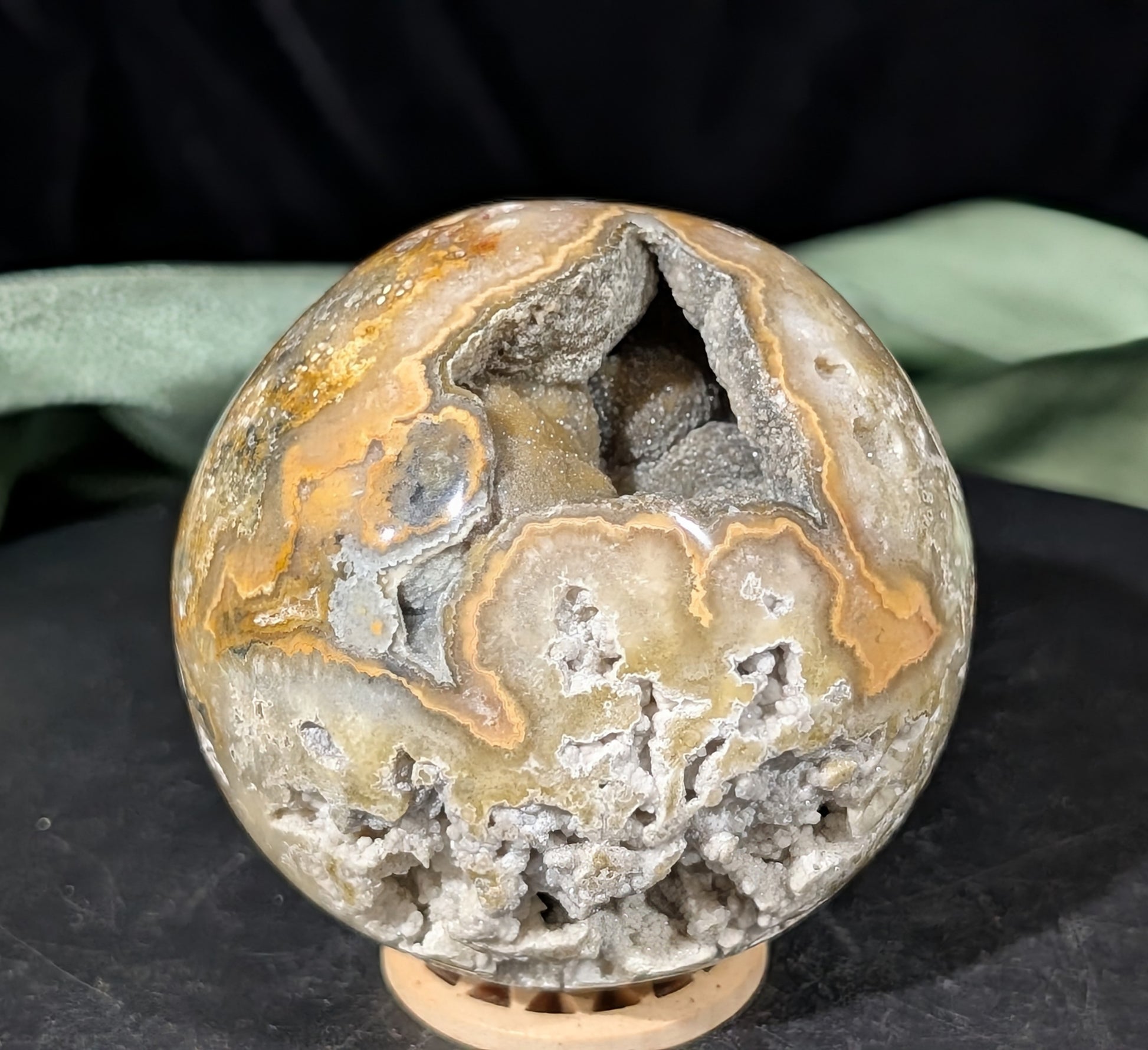 Super Druzy Yellow Crazy Lace Agate Sphere from Indonesia